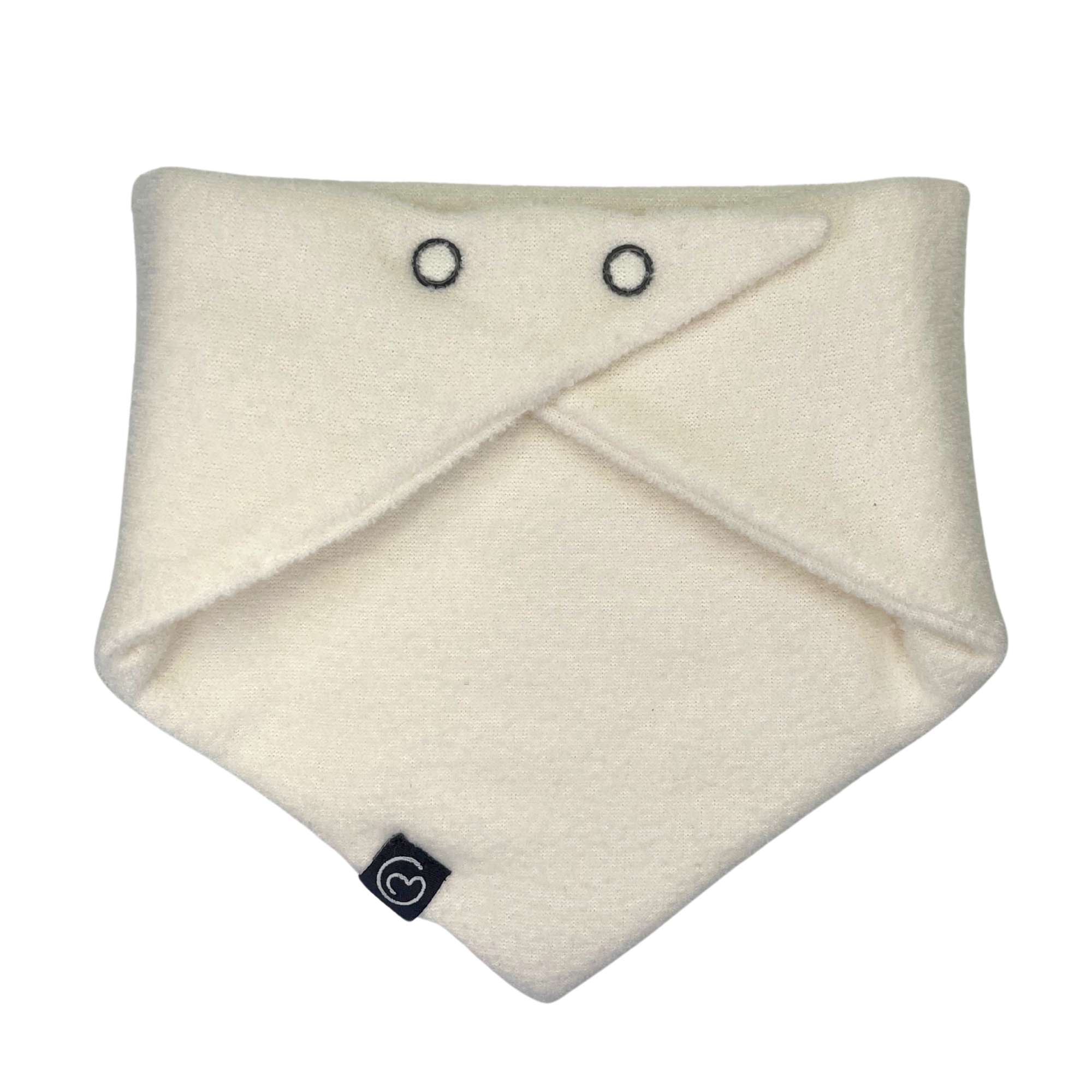 Für dein Baby im Winter: ein weicher Dreiecksschal, den du mit Drucknopf öffnen kannst und in zwei Längen verstellen kannst. Schützt Hals und Brust oder nach hinten umgedreht auch den Nacken von deinem Baby wenn es in der Trage sitzt. Du brauchst – sofern du eine Tragejacke trägst – dein Baby nicht extra anziehen unter der Jacke, Mütze und ggf. Schal sind aber wichtig.