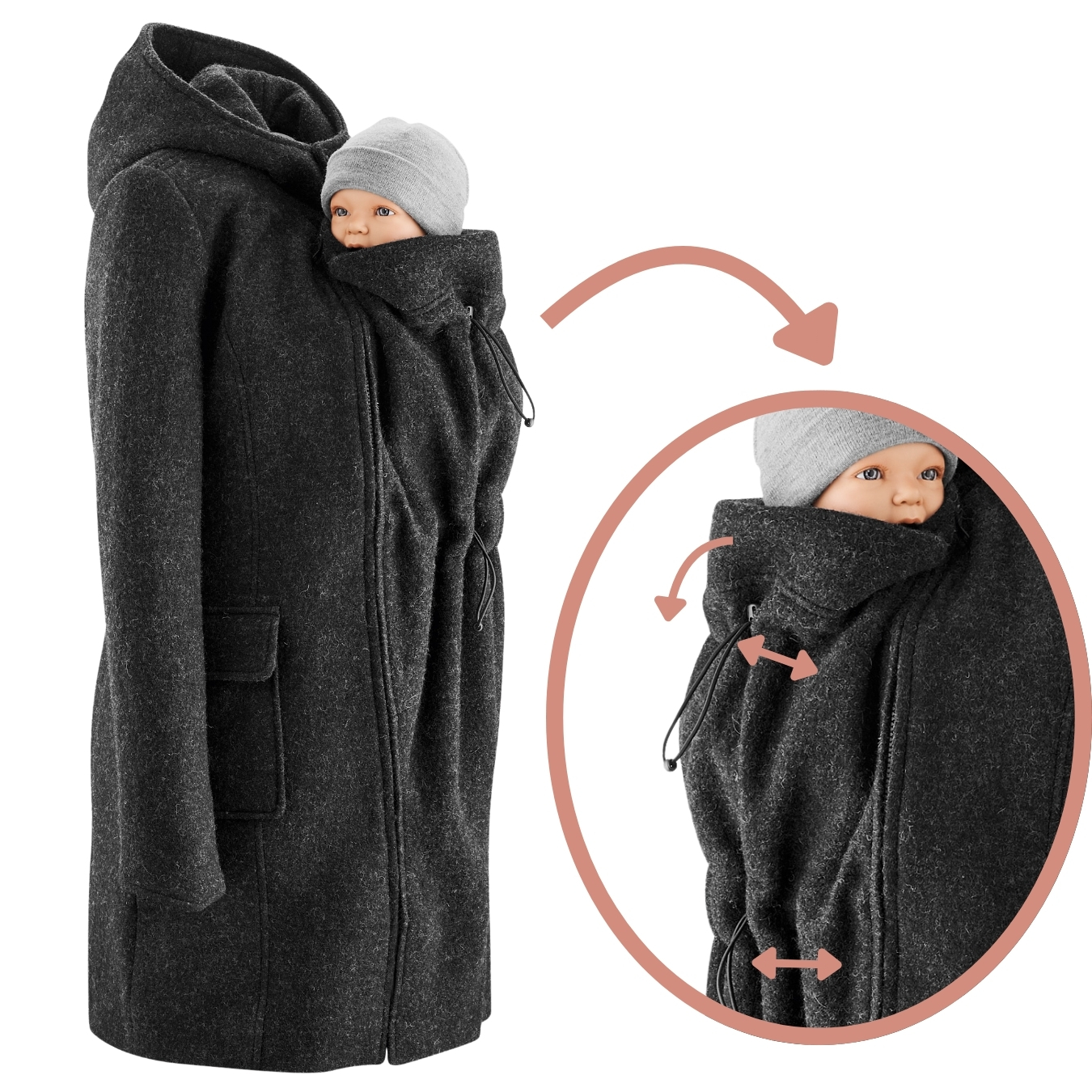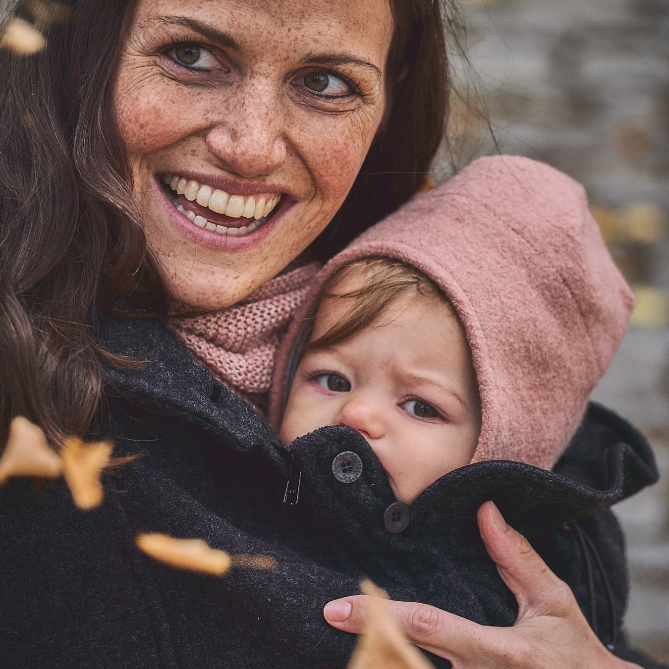 Ob du schwanger bist, dein Neugeborenes vorne trägst, ein Kleinkind auf dem Rücken hast oder einen Tag ganz für dich genießt – unser Vienna Wollmantel ist immer der Richtige. Mit zwei Einsätzen – einem für die Schwangerschaft, einem zum Babytragen– begleitet dich dieser Wollmantel zuverlässig, vom frischen Herbstmorgen bis zu eisigen Winterspaziergängen.