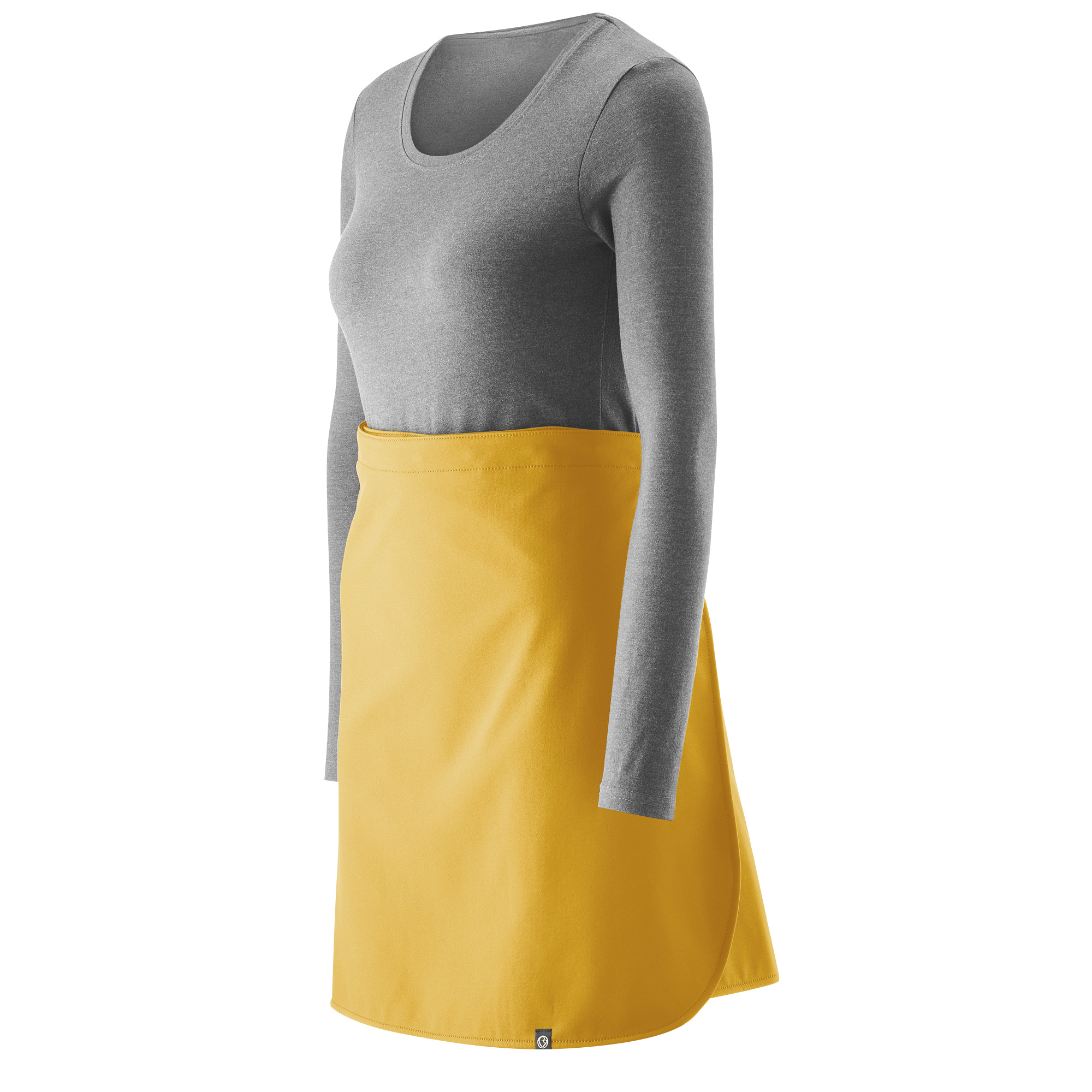 I had the pleasure to test the softshell skirt for a week from Bæreglede and I´m absolutely in love it! The button adjustment-system makes the skirt very adaptable and it gives you confident-boost by fitting perfectly every day. And the bright yellow color just pop and lights up even the rainiest day, leaving you in a perfect happy mood. I wore the skirt at the office, in meetings, outdoor while carrying my child in a wrap, while walking my dog. It fits any different occasions and it can be dressed up or down depending the accessories. The skirt gives a bit protection from wind, cold and rain, so in addition to warm my butt and thighs - I also used it as a cover while carrying my child. I highly recommend this shirt, for its multiple choices of use!
