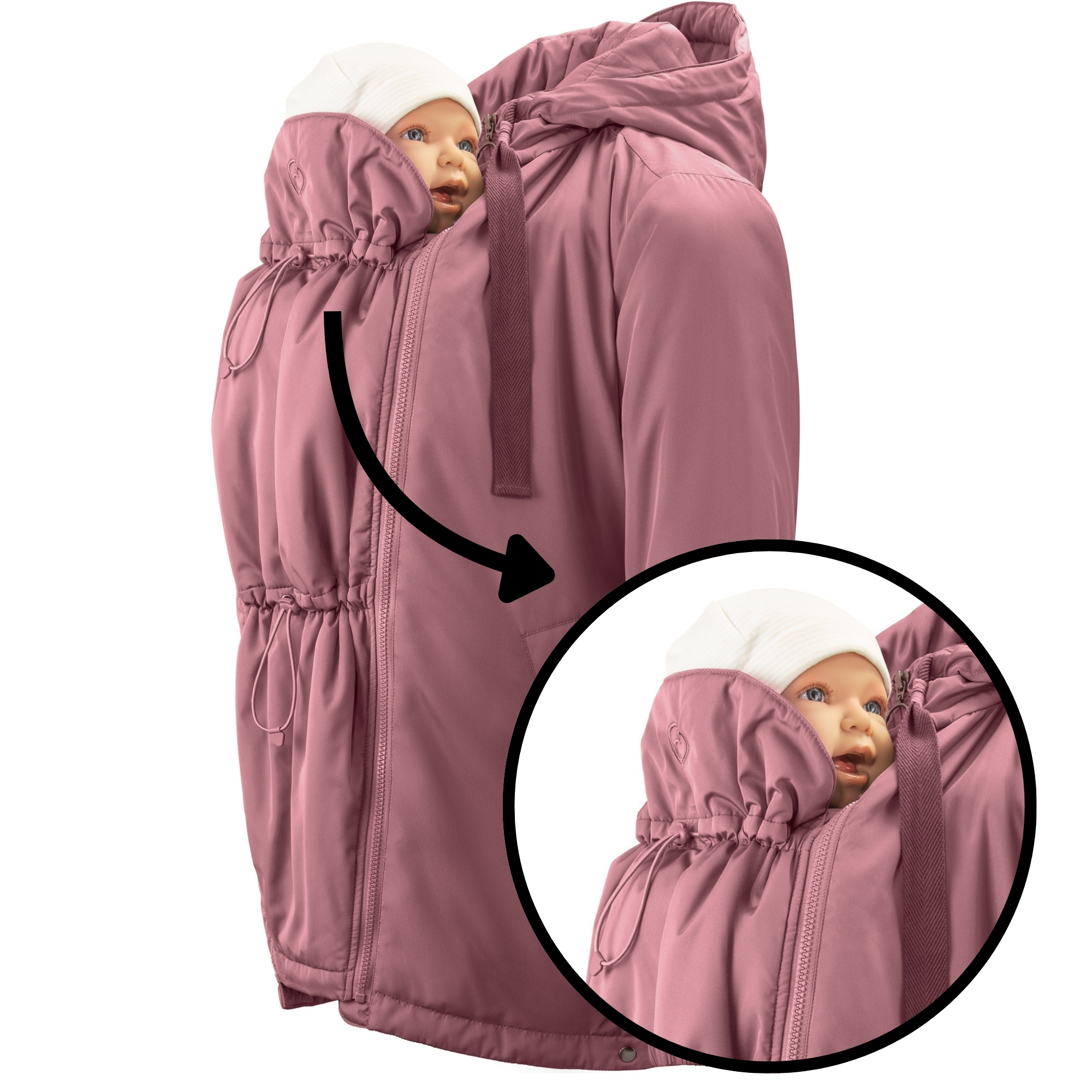Bereit zum Babytragen? Einfach den Babyeinsatz vorne oder hinten einzippen – je nachdem, wie du es am liebsten hast – und los geht’s. Und wie bei allen mamalila-Jacken gilt: Unsere Schnitte sehen besonders gut aus, wenn du sie solo trägst!