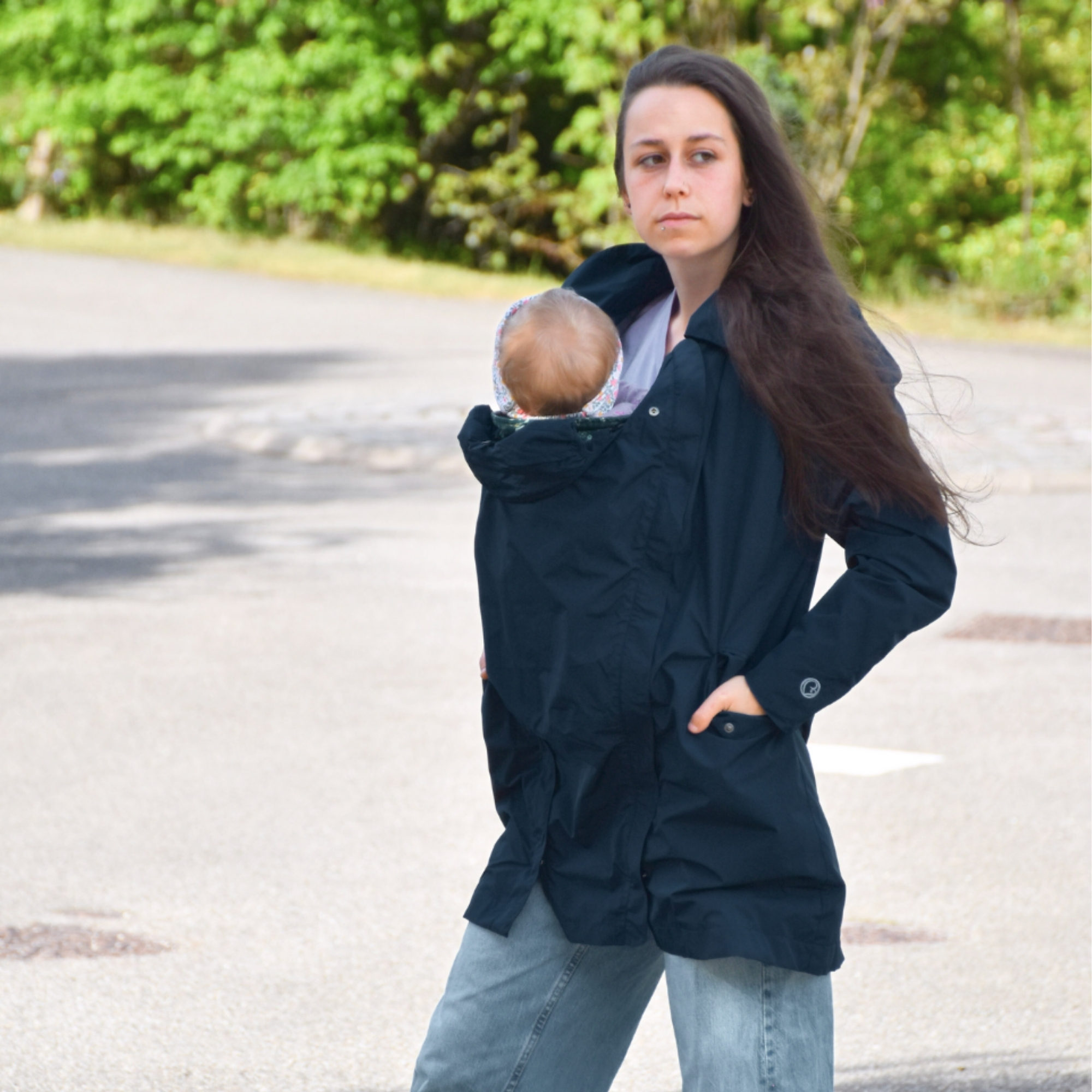 Sein lässiger Style und die vielen kleinen Details dieses Mantels lassen keine Wünsche offen, wenn Du als Mutter mit Deinem Tragebaby unterwegs bist.