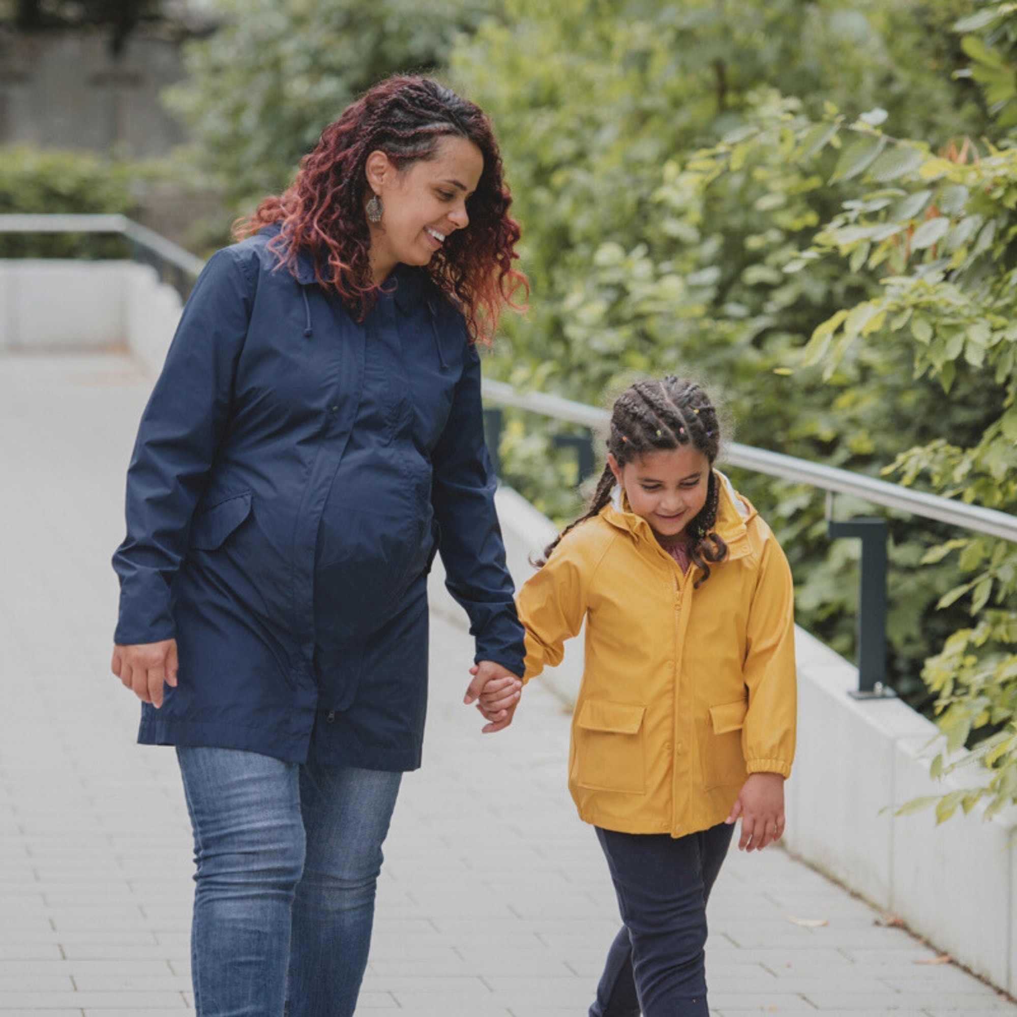 Bringen die Wolken dahinten noch Regen oder hält das Wetter? Bei Regenschutz weiß man oft nicht genau, ob man ihn wirklich braucht – umso besser, Du hast ihn einfach dabei! Unser Regen-Tragemantel ist leicht und lässt sich einfach in Deiner Tasche verstauen, so dass er Dir auf dem Weg zur Kita oder ins Café nicht im Weg, bei einem plötzlichen Schauer aber schnell zur Hand ist.