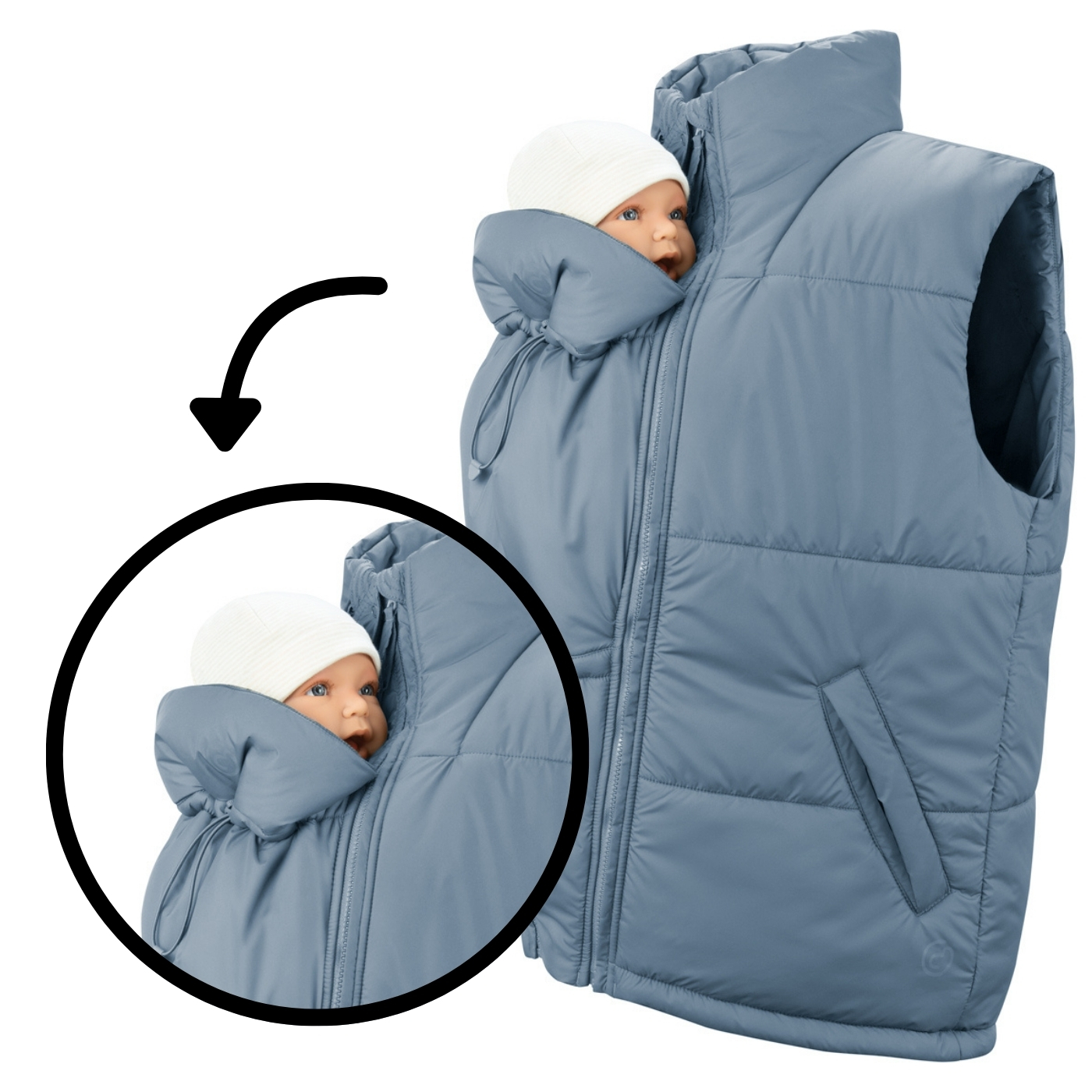 Unisex, cool und stylisch - diese Trageweste macht Spaß. Aber vor allem unterstützt sie dich beim Babytragen: trägst du dein Baby mit unter der erweiterbaren Weste, musst du es nicht extra anziehen, wenn ihr raus geht. Du kannst die Weste mit vorne getragenem Kind, aber auch beim Rückentragen anziehen. Für die Schwangerschaft kannst du den verstellbaren Babyeinsatz als Schwangerschaftserweiterung verwenden.