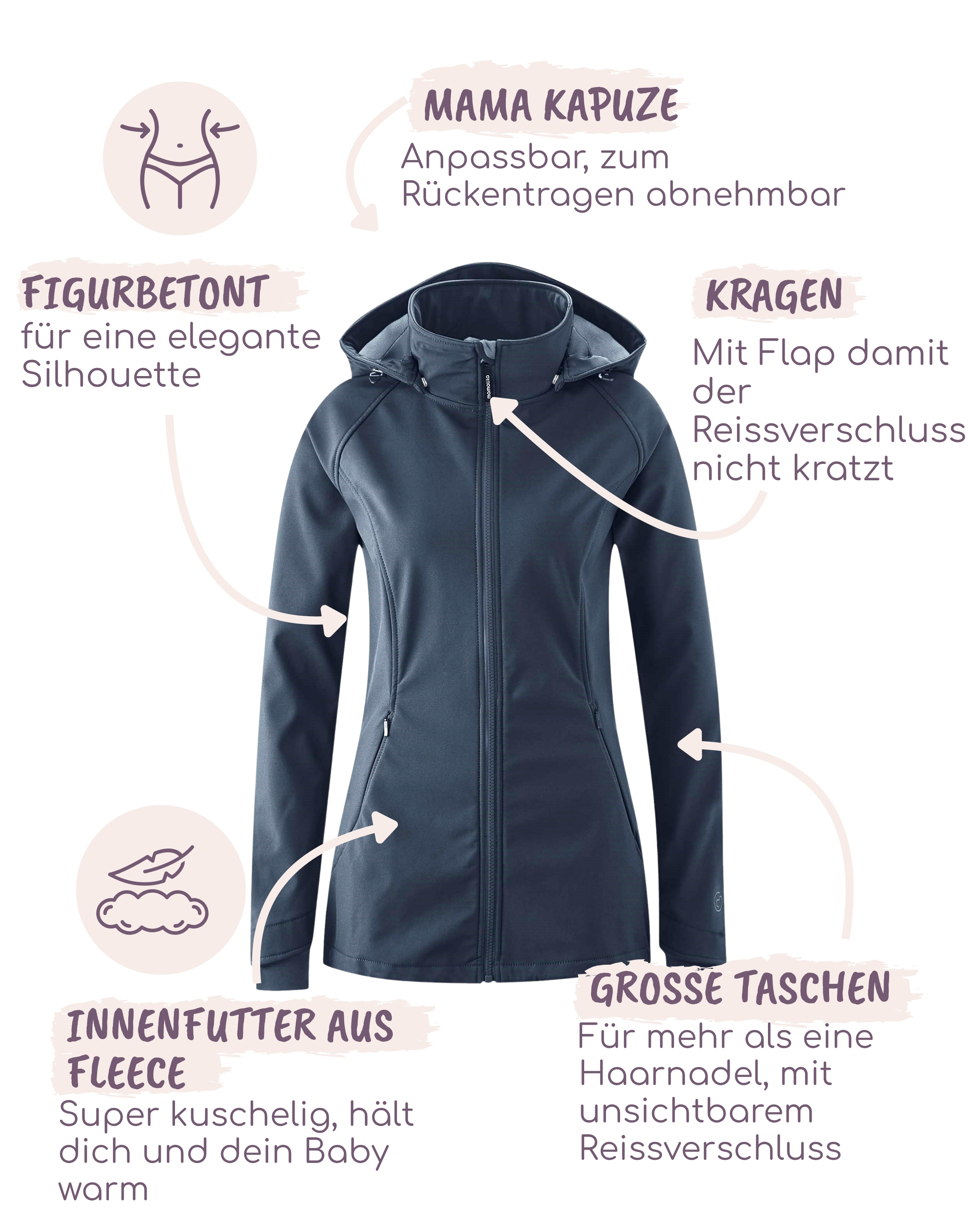 Die mamalila-Softshelljacke muss funktional in doppelter Hinsicht sein: